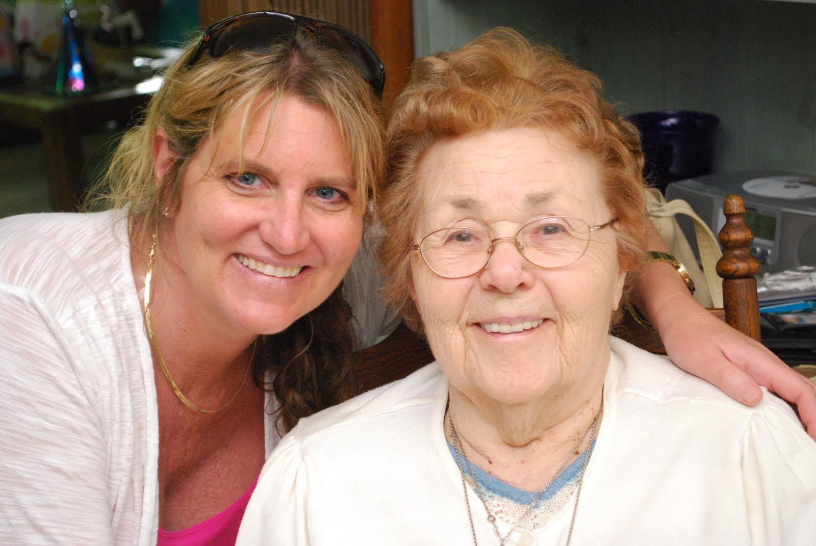 Grandma loved her candy necklace and had it in her mouth like this for quite a while. She is such a kid at heart!